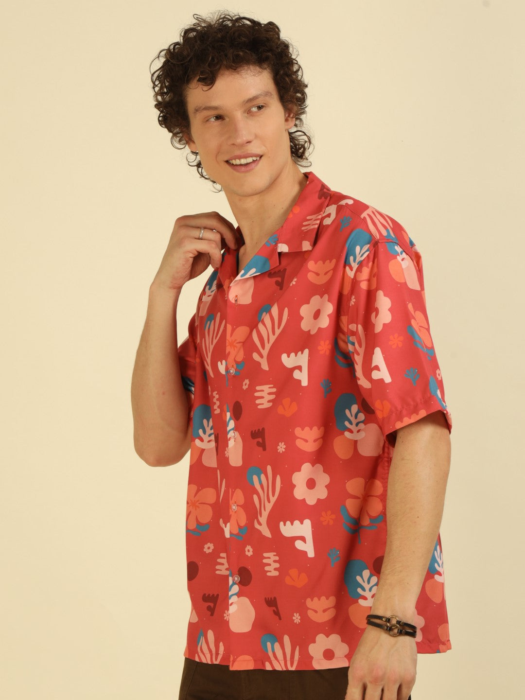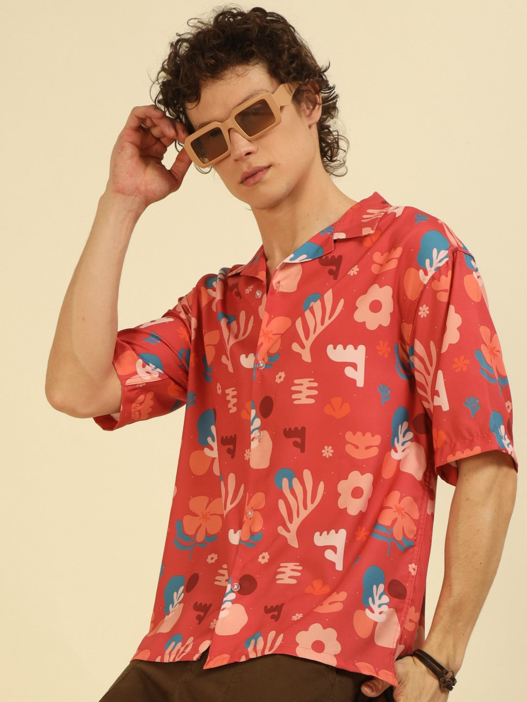 Unleash your inner flower child with our Red Floral Print Oversized Fit Shirt. With a vibrant red hue and oversized fit, this shirt is sure to make a statement. Perfect for adding a pop of color to any outfit. (Note: May cause excessive flower power.)