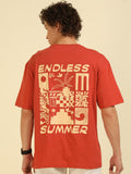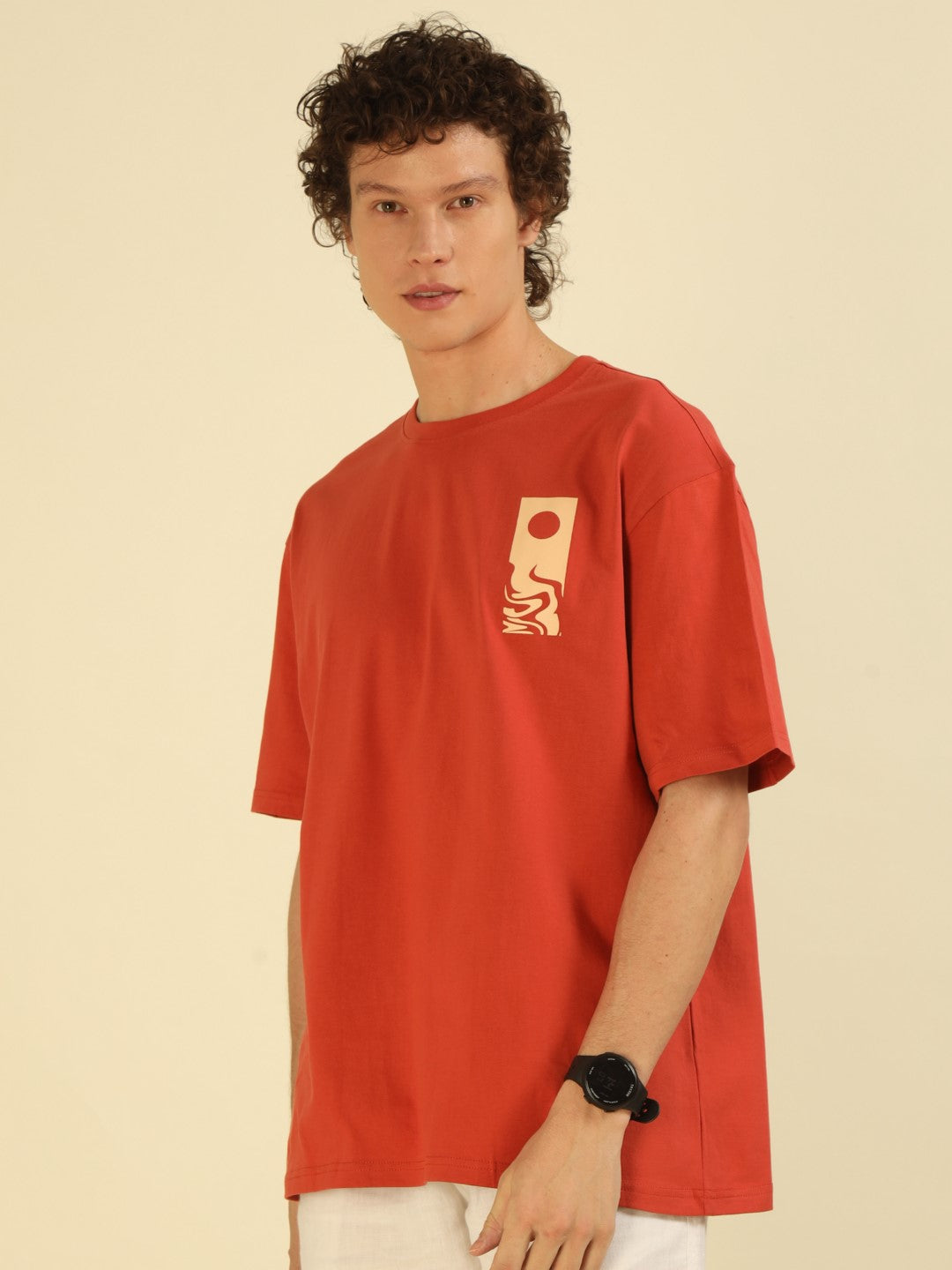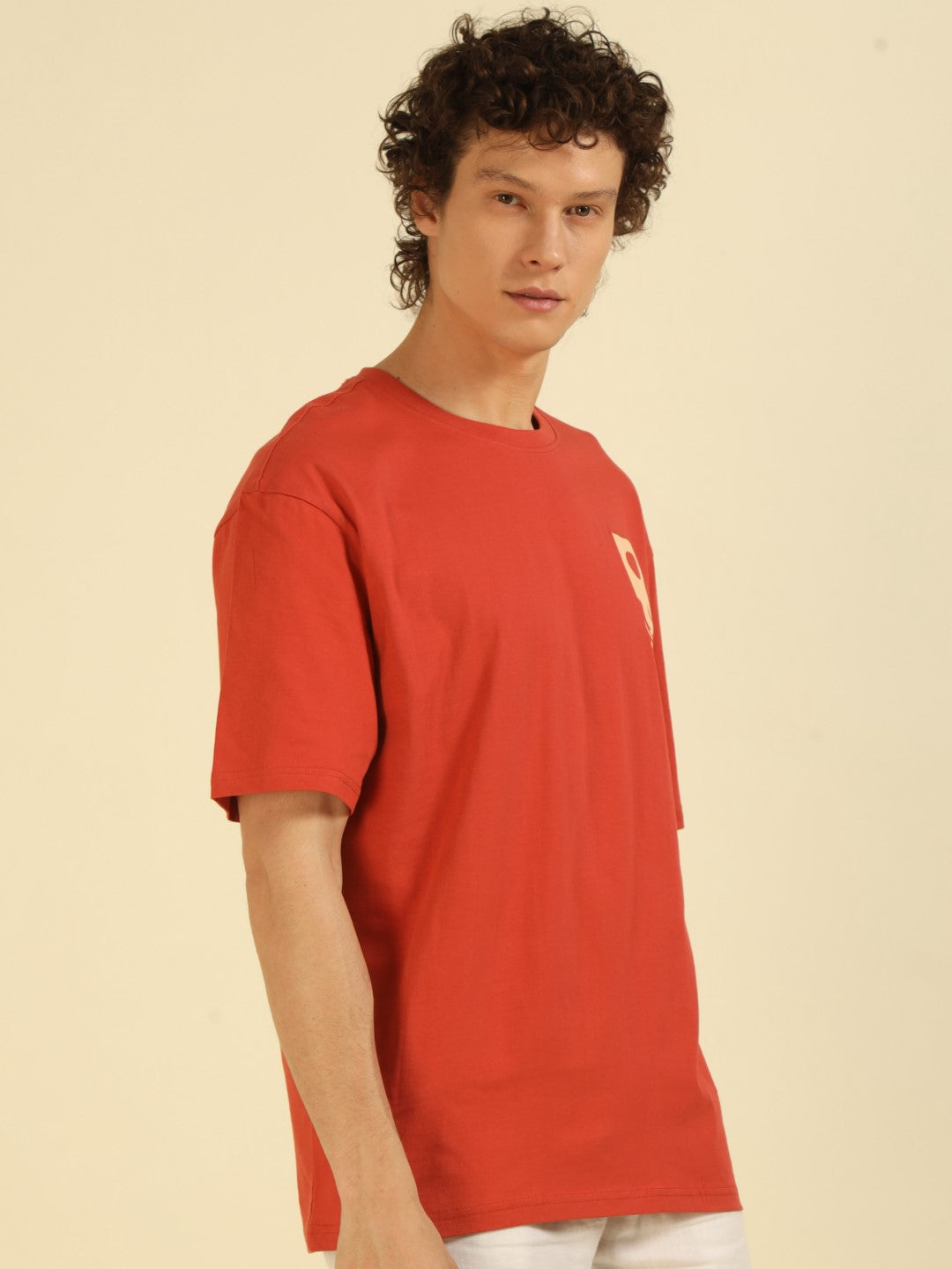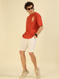 Rust Typography Print Oversized Half-sleeve Tshirt
