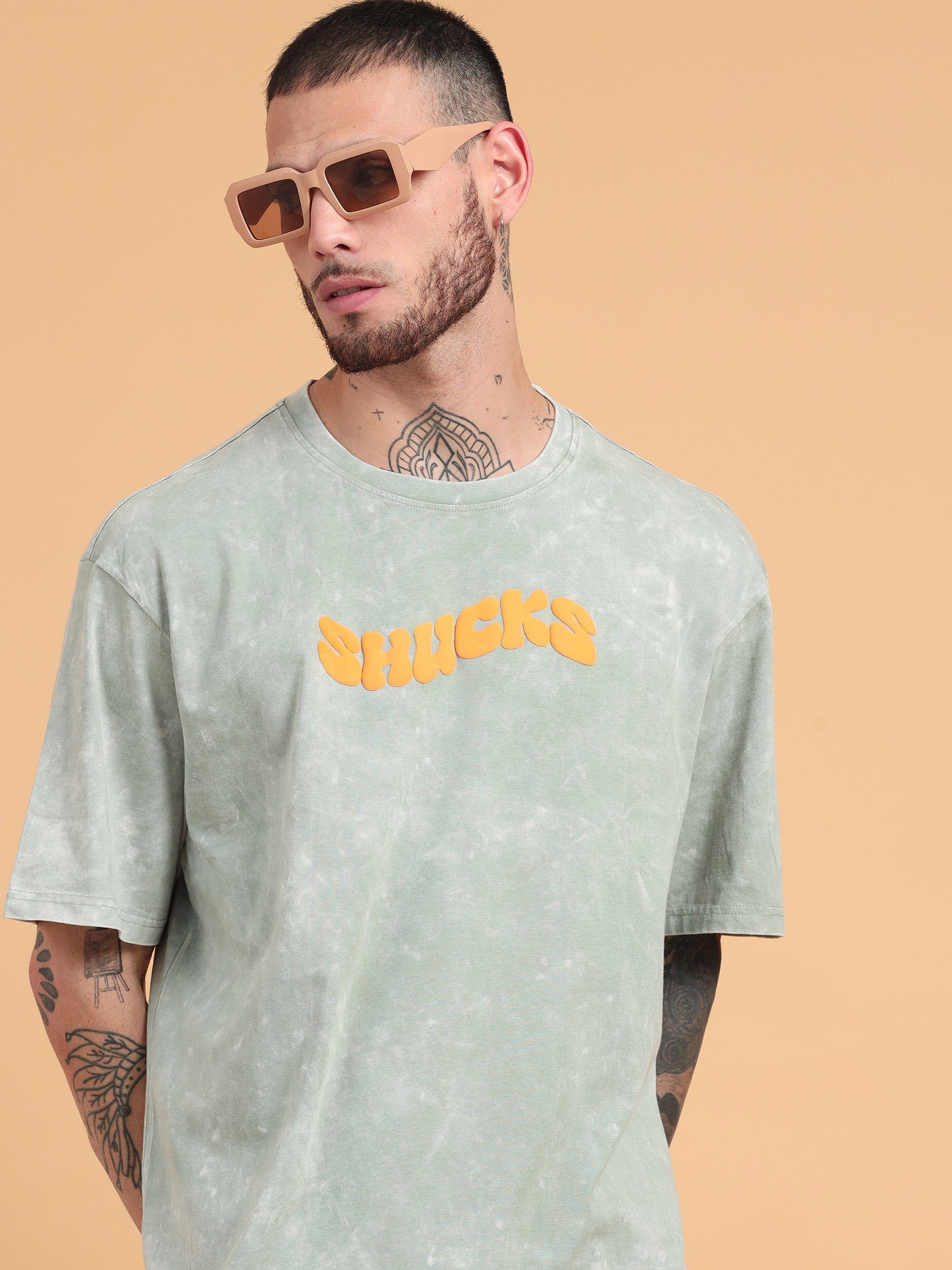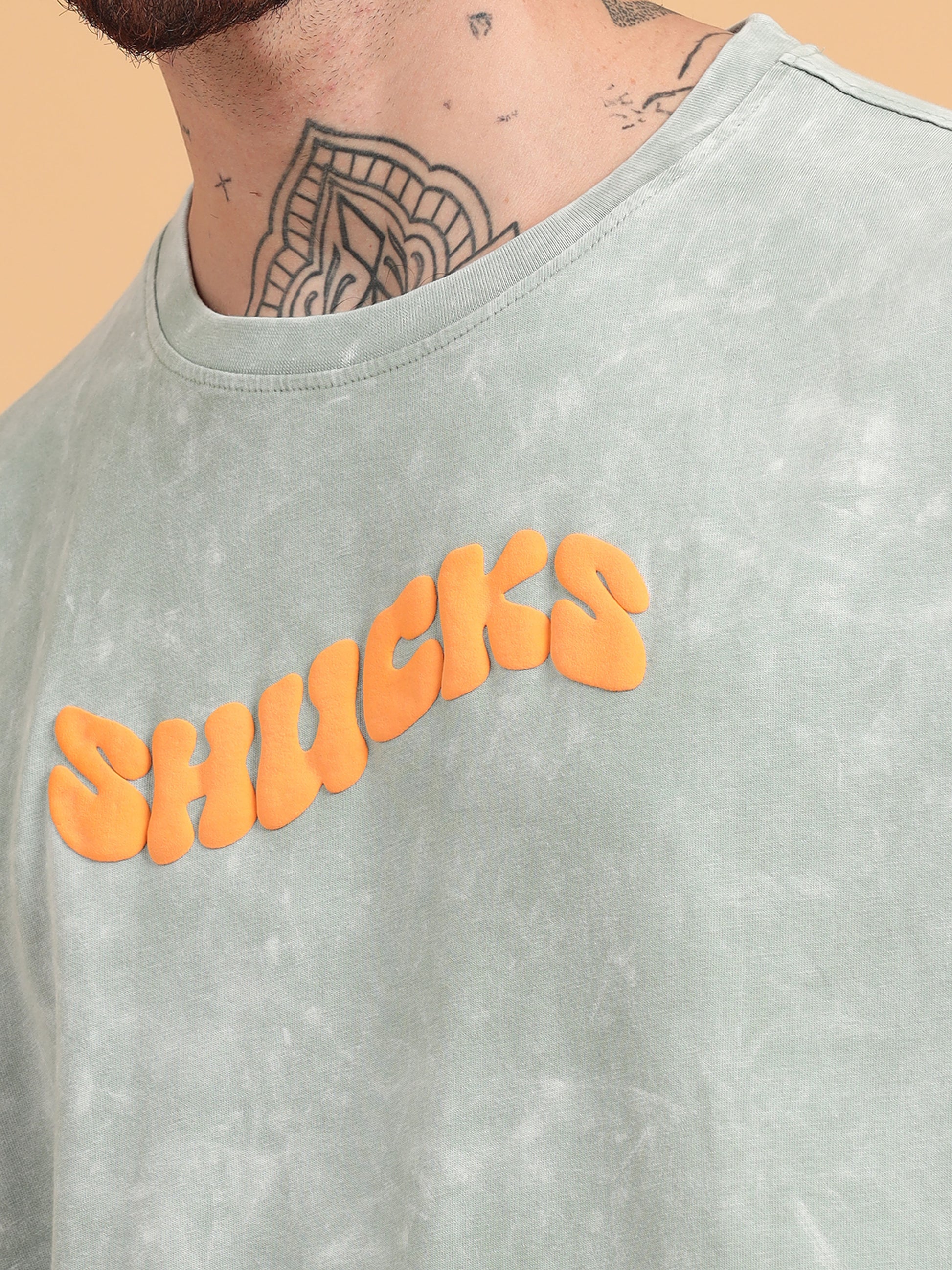 Introducing the Shucks oversized tshirt - the epitome of cool! With a playful sage typography puff print and acid wash design, you'll stand out in the crowd. Perfect for those who don't take themselves too seriously. Style meets comfort in this quirky tshirt.