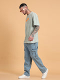 Shucks: Sage Typography puff Print Acid Wash Oversized Tshirt