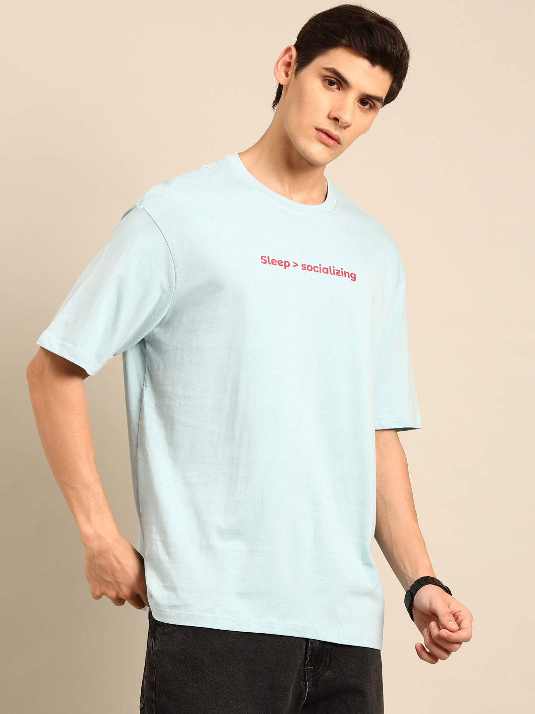 Embrace the perfect balance of comfort and style with our Sleep and Socialising tshirt featuring an oversized fit and aqua typography print. Stay cool and trendy while lounging or meeting up with friends. Have your fashion game on point with this playful and quirky tee. (You won't want to take it off!)