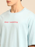 Sleep and Socialising: Aqua typography print oversized fit tshirt