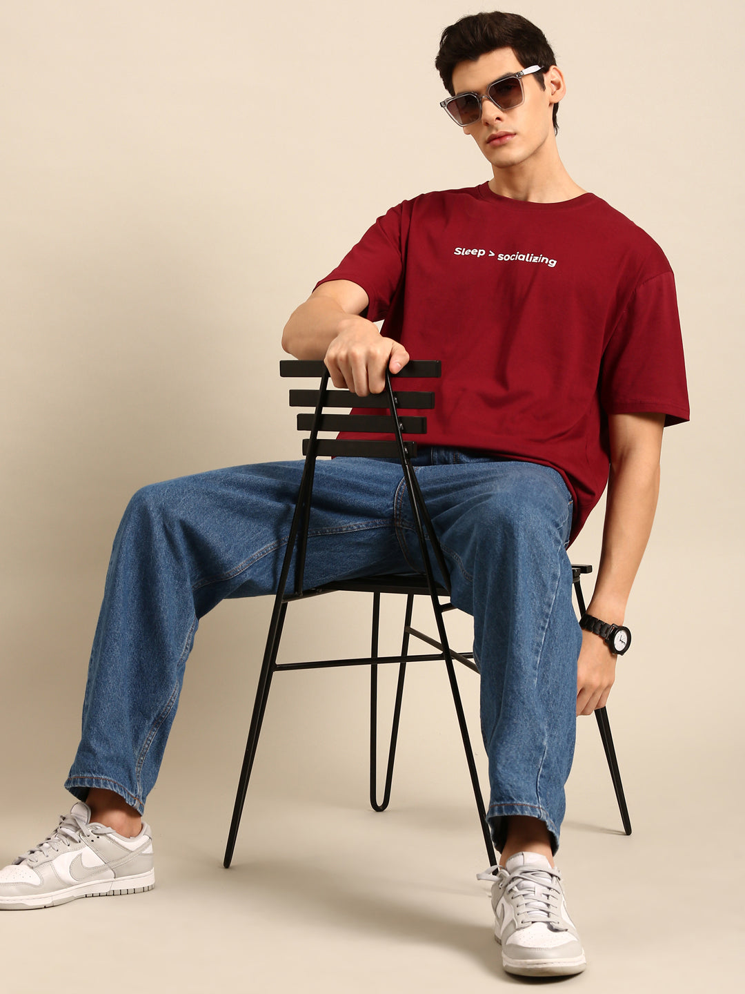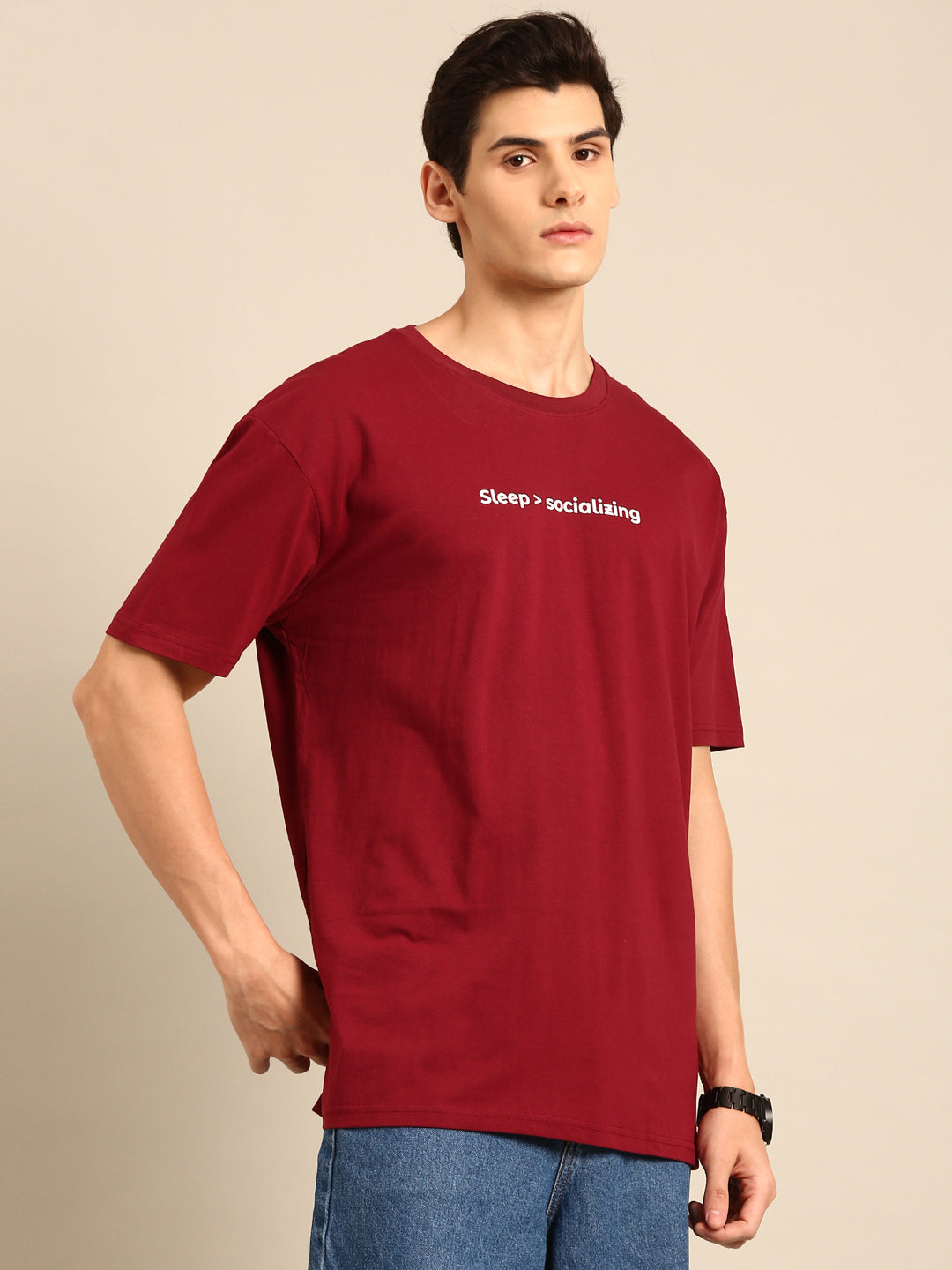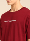 Sleep and Socialising: Maroon typography print oversized fit tshirt