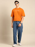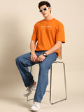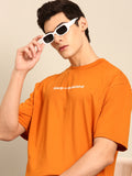 Sleep and Socialising: Orange typography print oversized fit tshirt