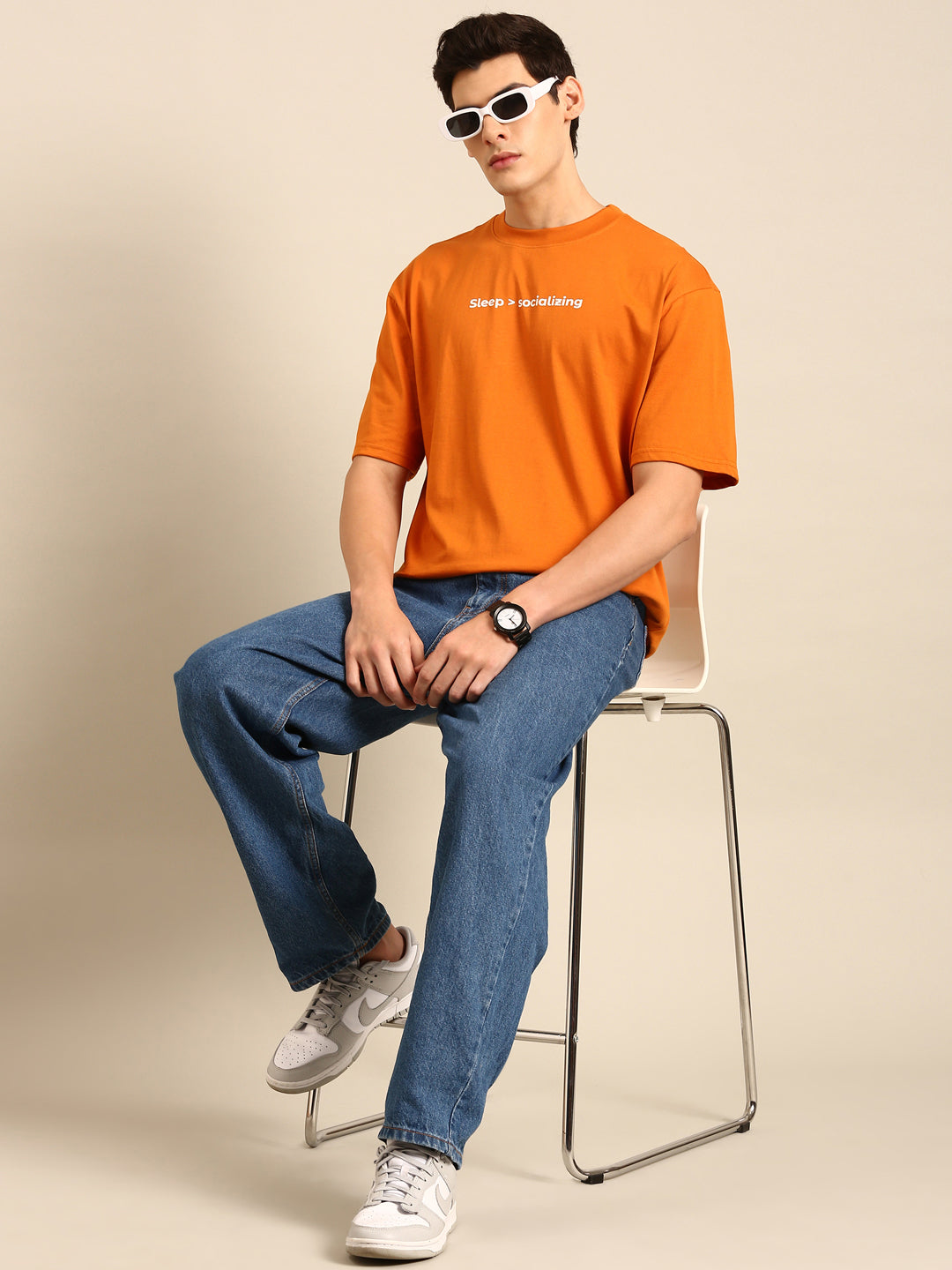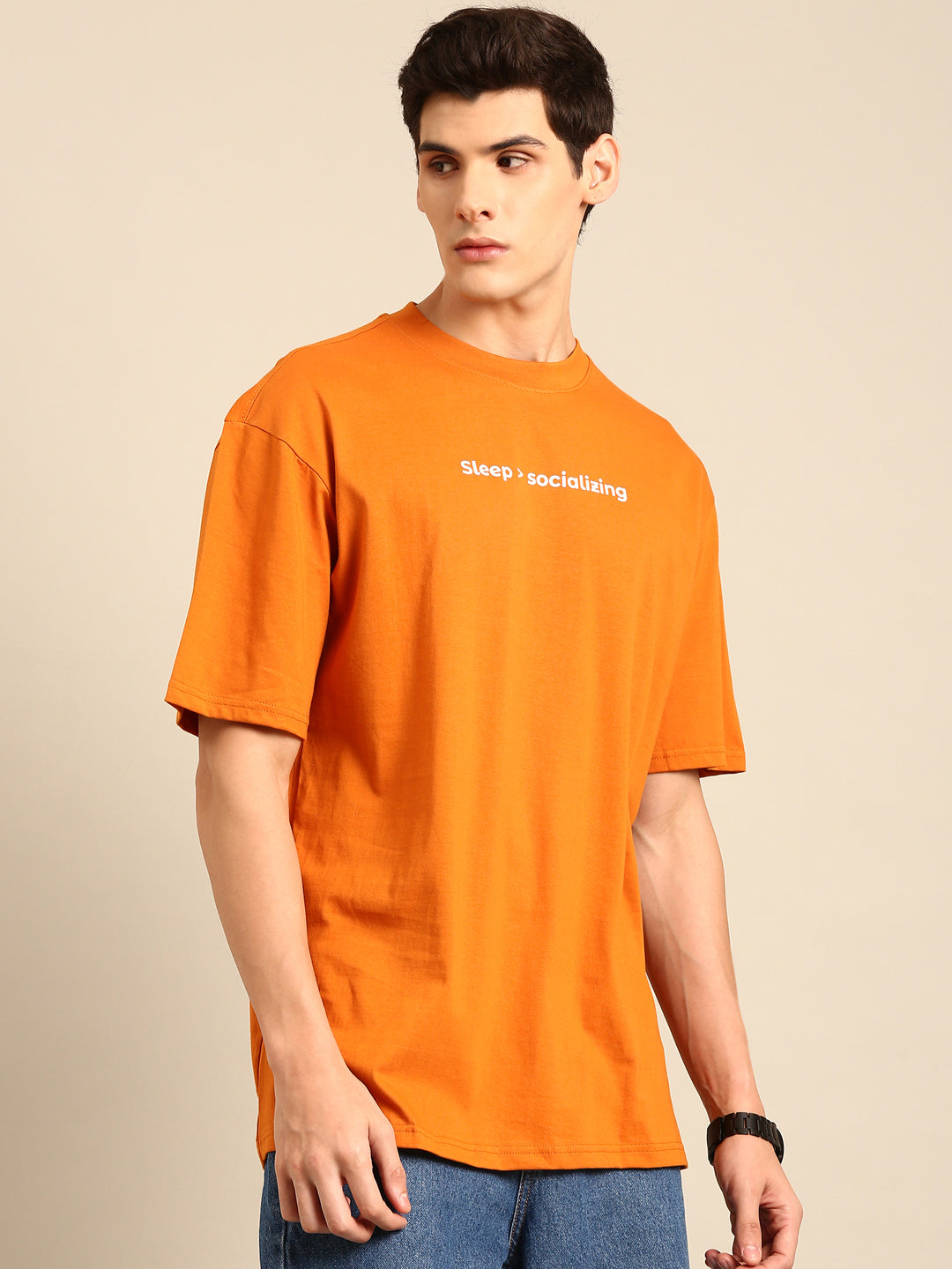 Get your beauty rest in style with our Sleep and Socialising oversized fit tshirt. With a playful orange typography print, you'll be the talk of any gathering. Plus, the roomy fit ensures maximum comfort for those all-nighters. Sleep in and slay the day!