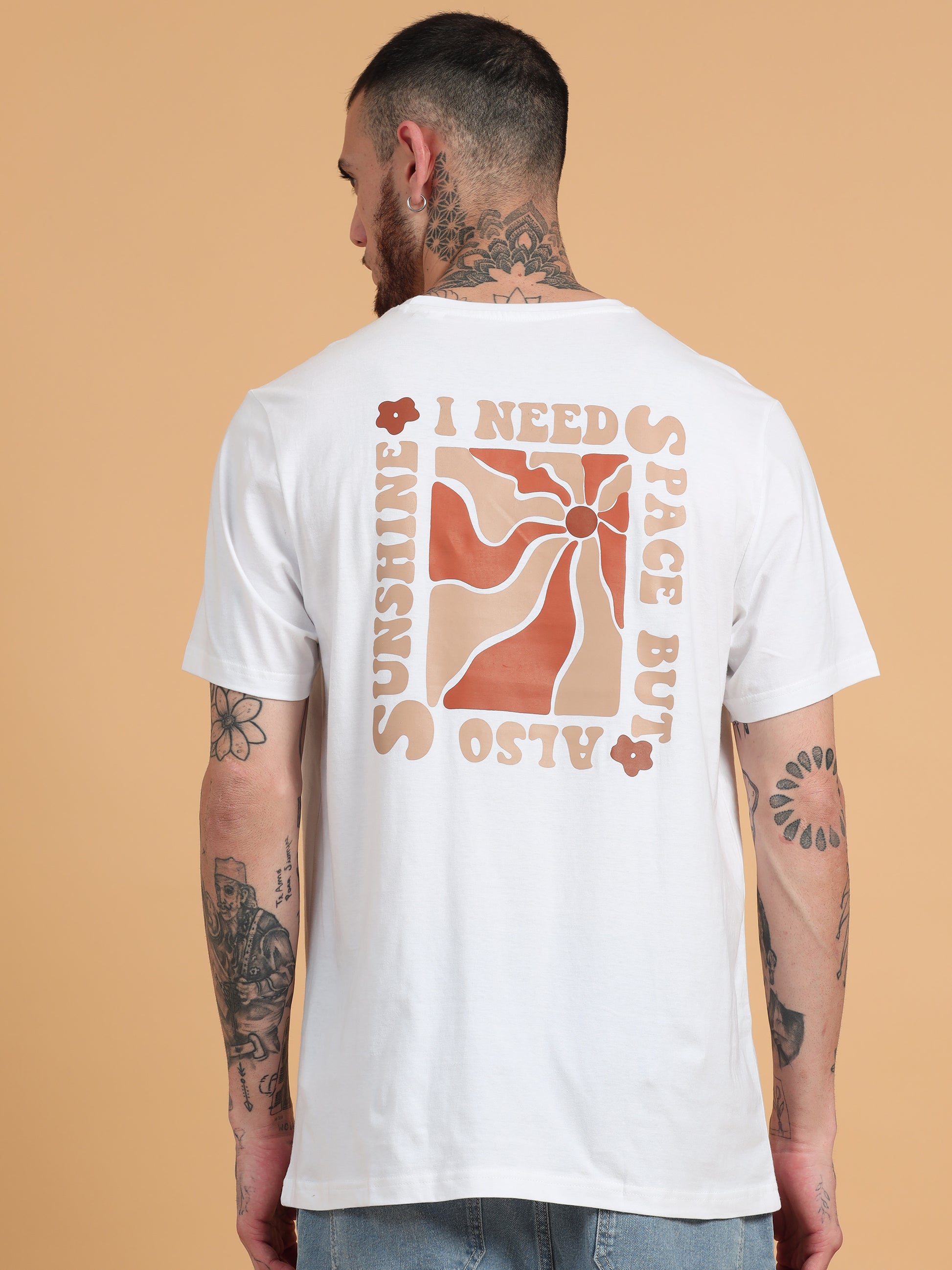 Space and Sunshine: White Graphic Print Regular Fit Tshirt