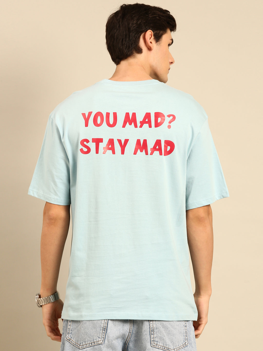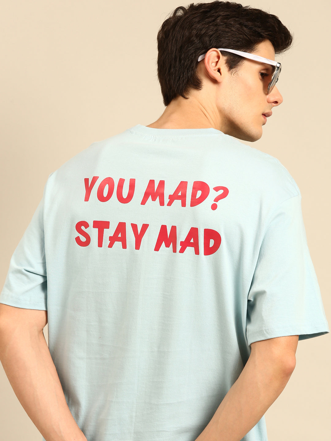 Get ready to make a statement with Stay Mad's oversized fit tshirt! This aqua typography print tee is designed for those who aren't afraid to show off their quirky side. With its playful design and comfortable fit, this shirt is perfect for adding a touch of fun to any outfit.