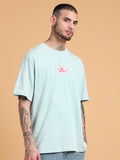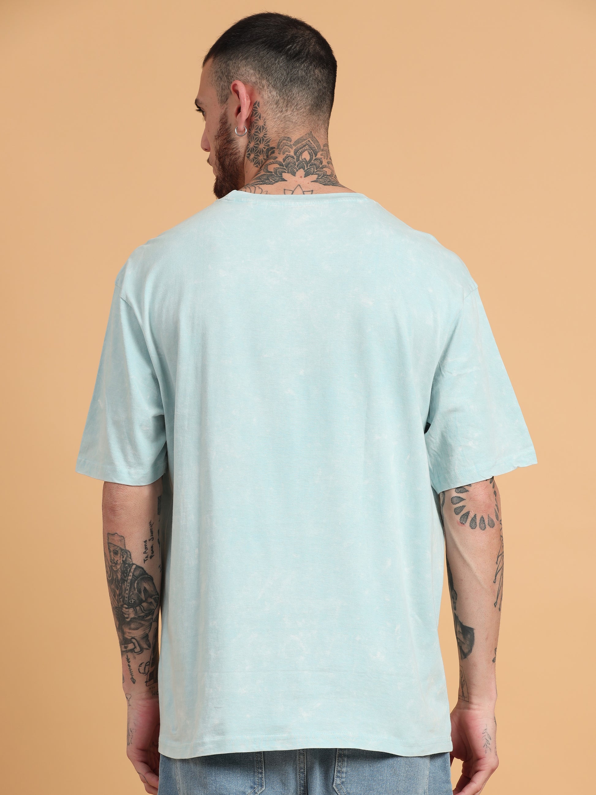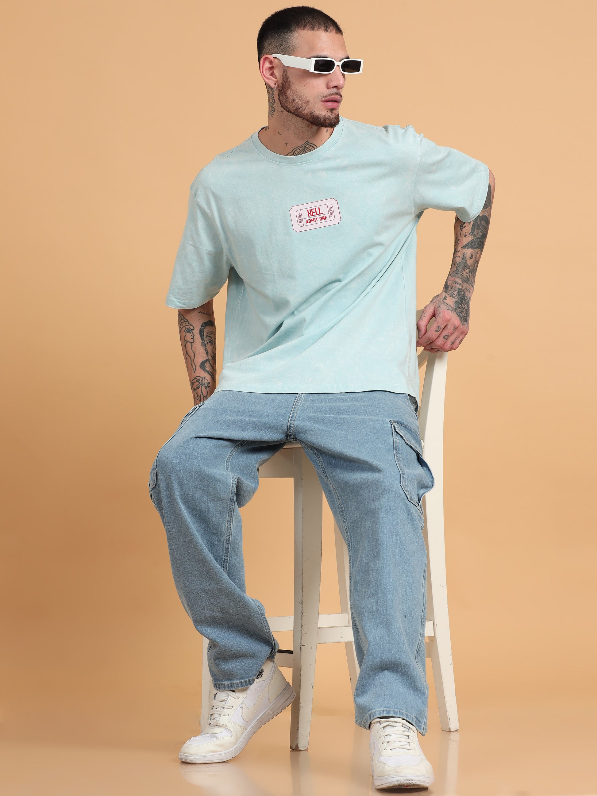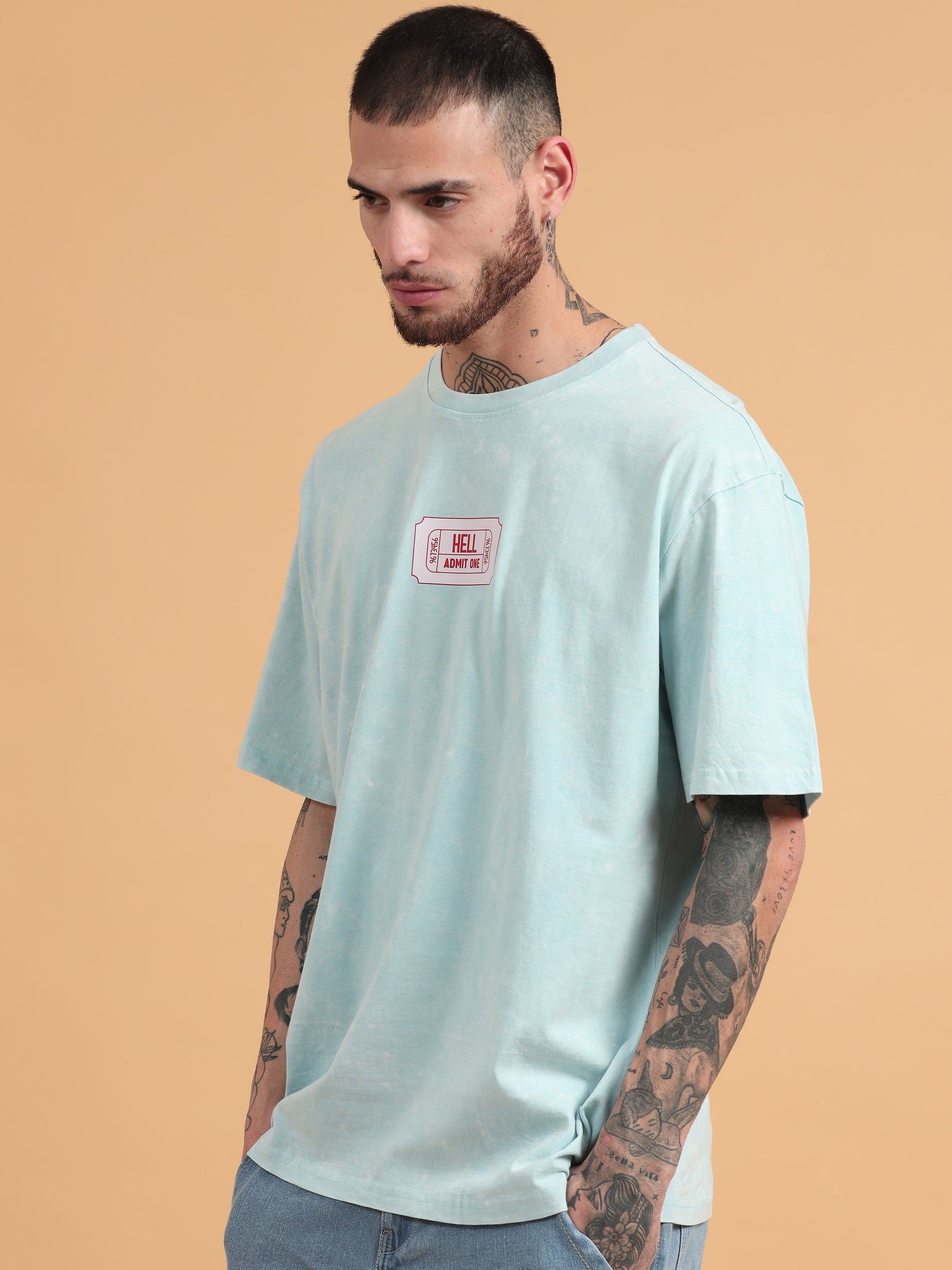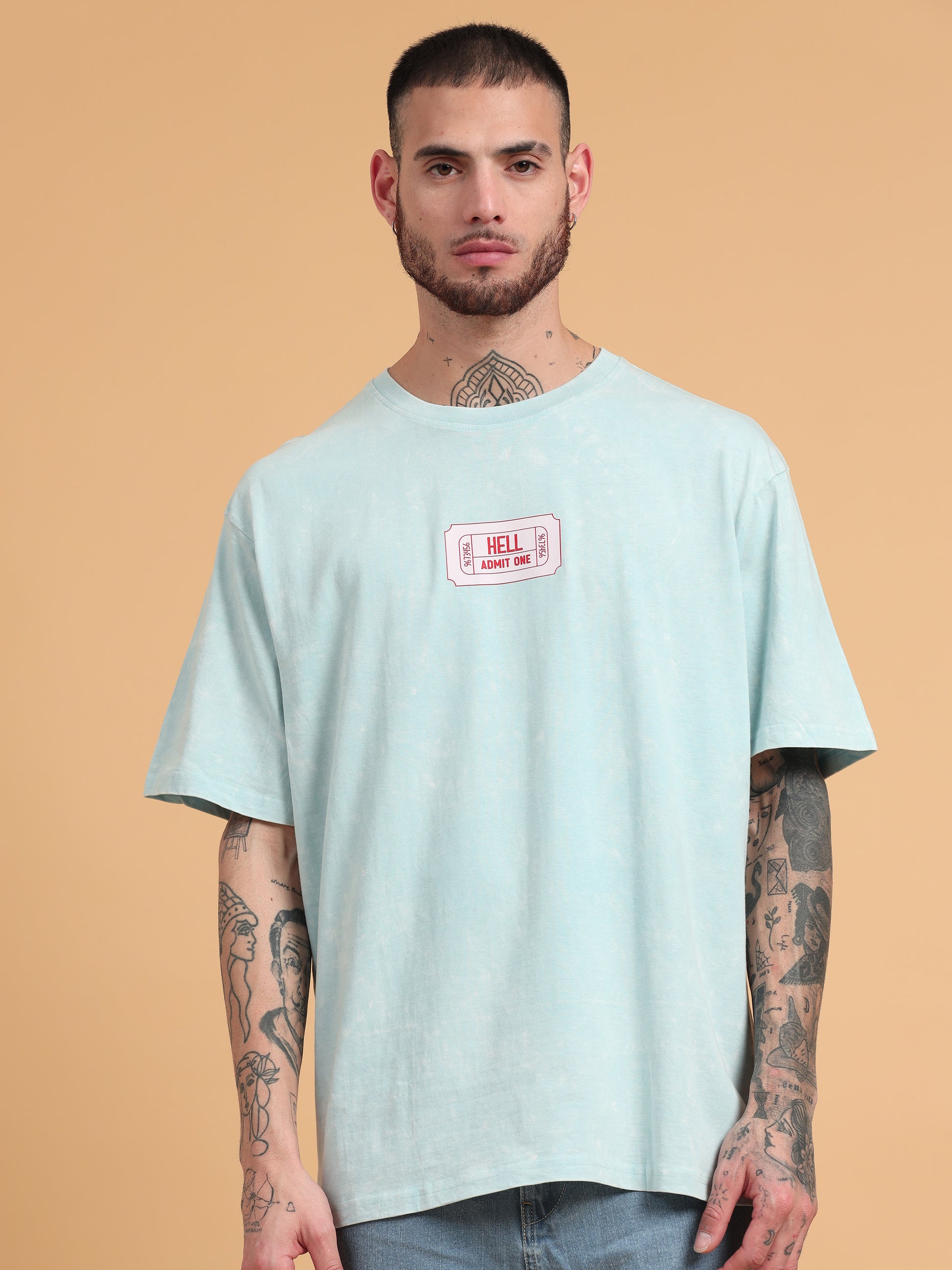 Ticket to Hell: Aqua Graphic Print Acid Wash Oversized Tshirt