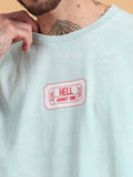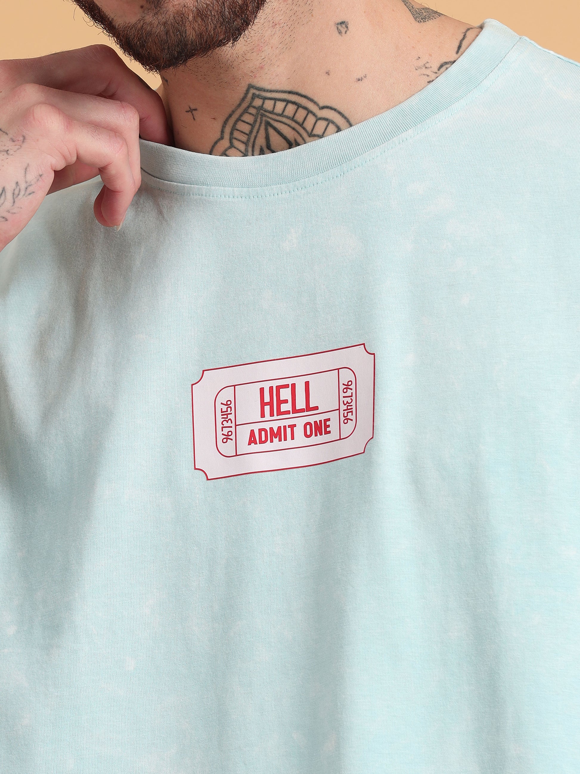 Score a ticket to hell with this quirky tee! Featuring an oversized fit and an acid wash design, this aqua graphic print tshirt is the perfect addition to your wardrobe. It's sure to make a statement and add some edge to your style. (Disclaimer: actual transportation to hell not included.)