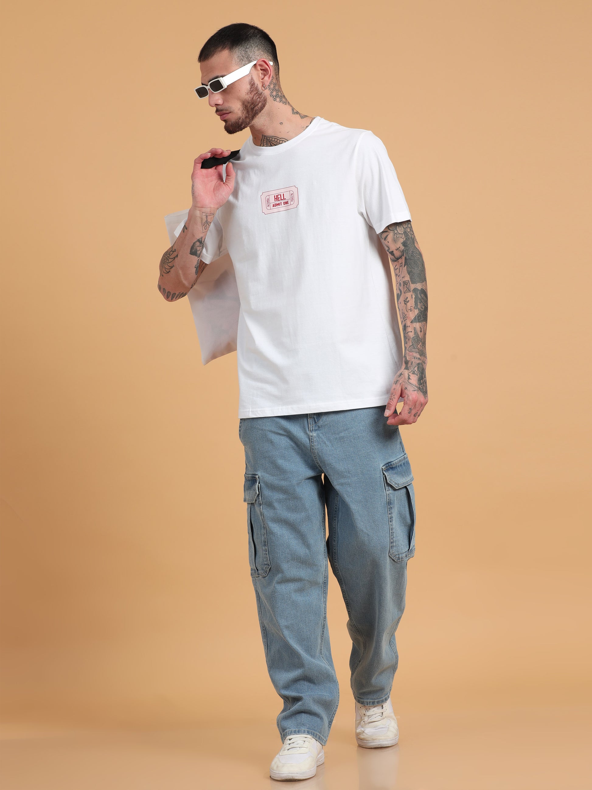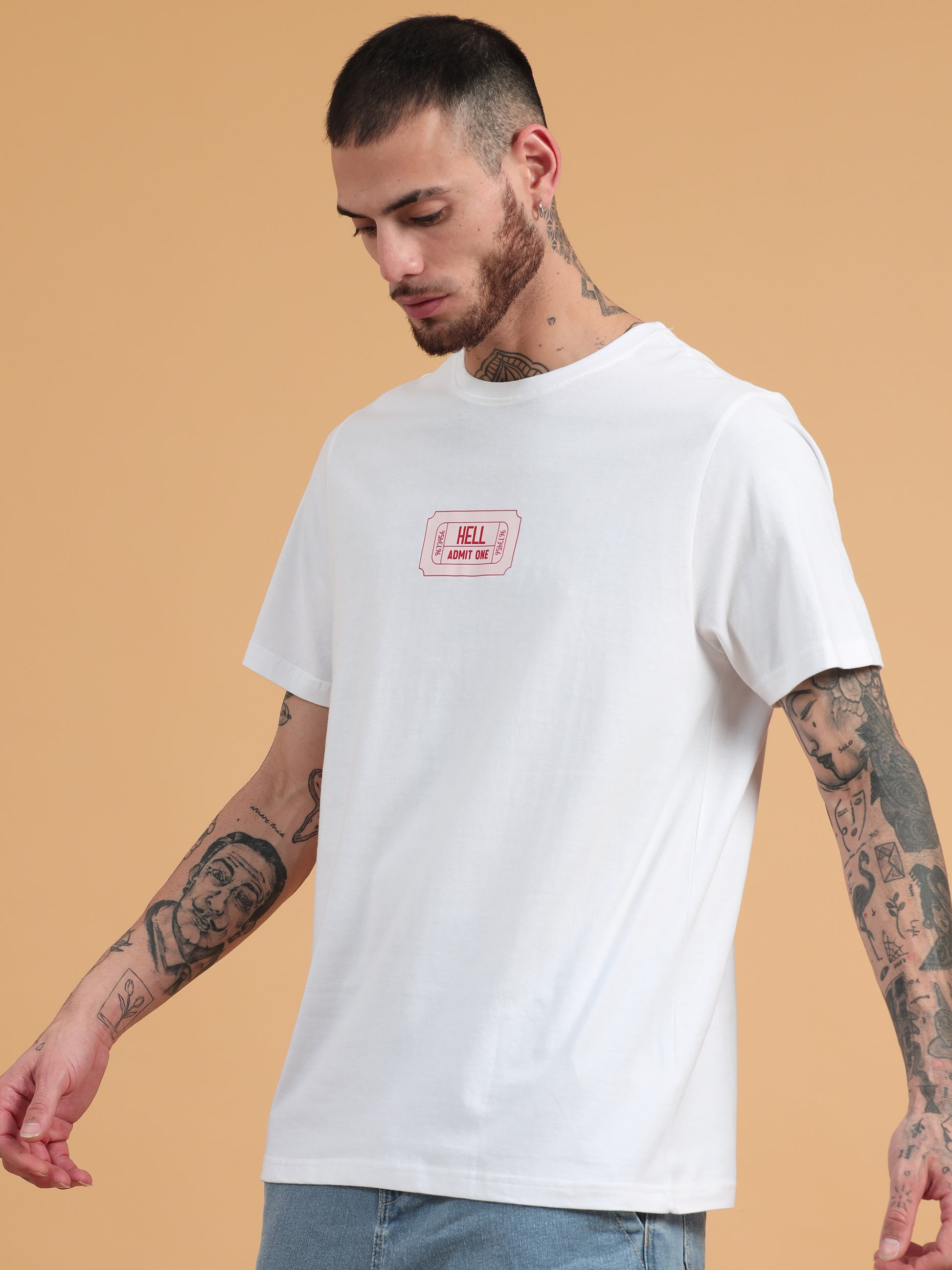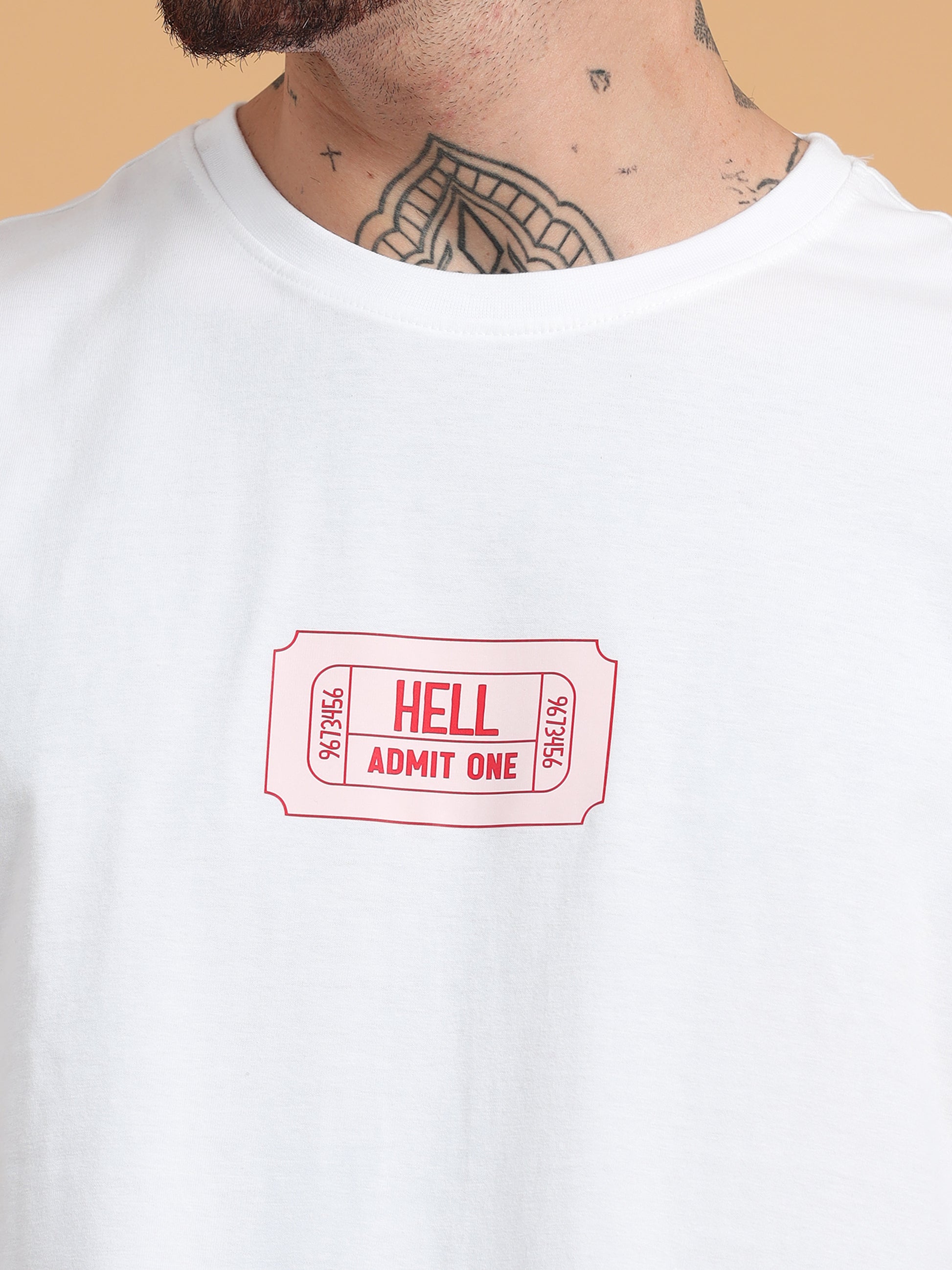 Ticket to Hell: White Graphic Print Regular Fit Tshirt