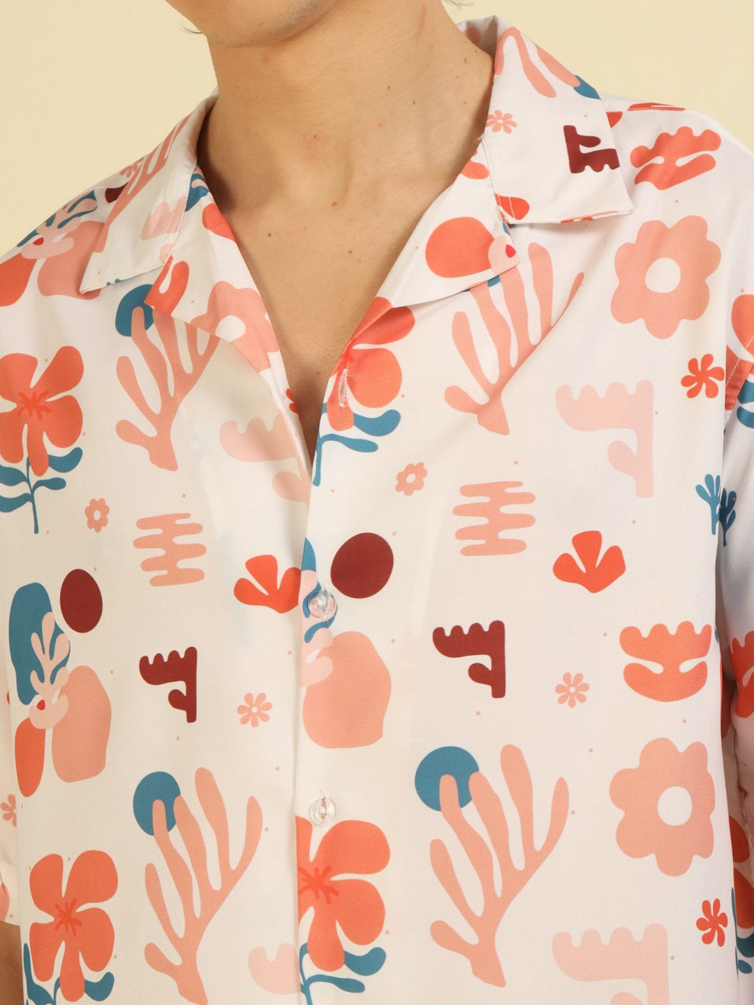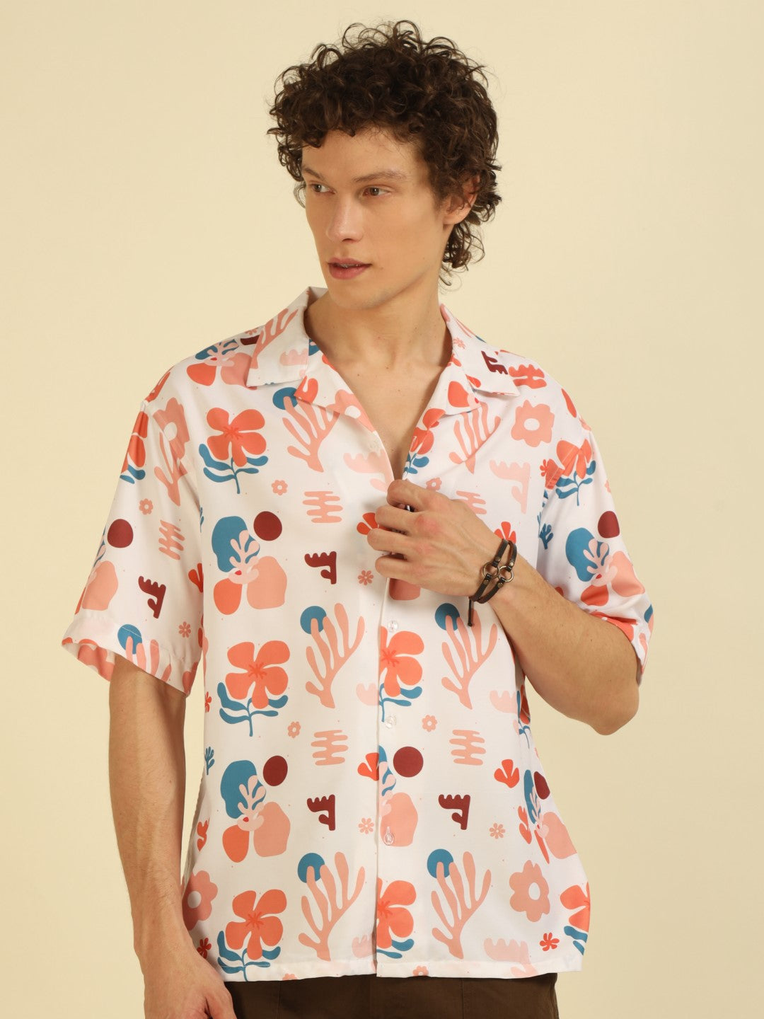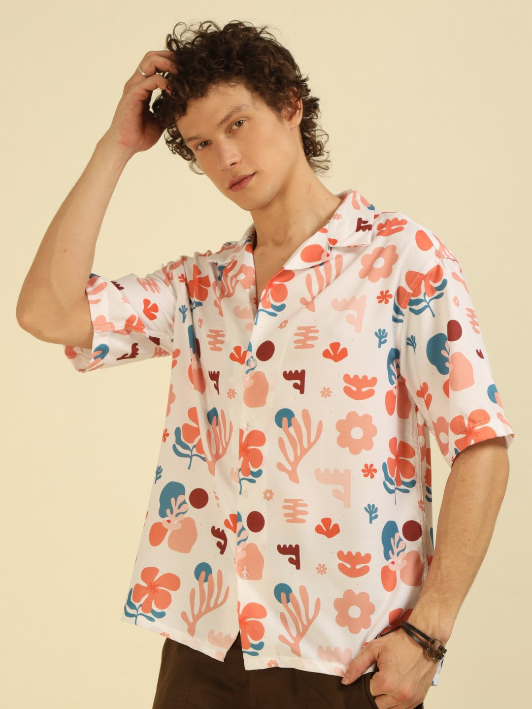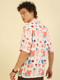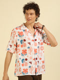 White Floral Print Oversized Fit Shirt