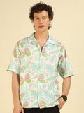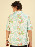 White Floral Print Oversized Fit Shirt