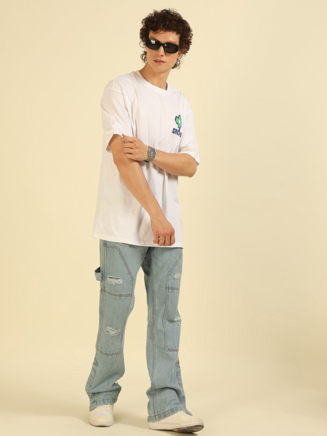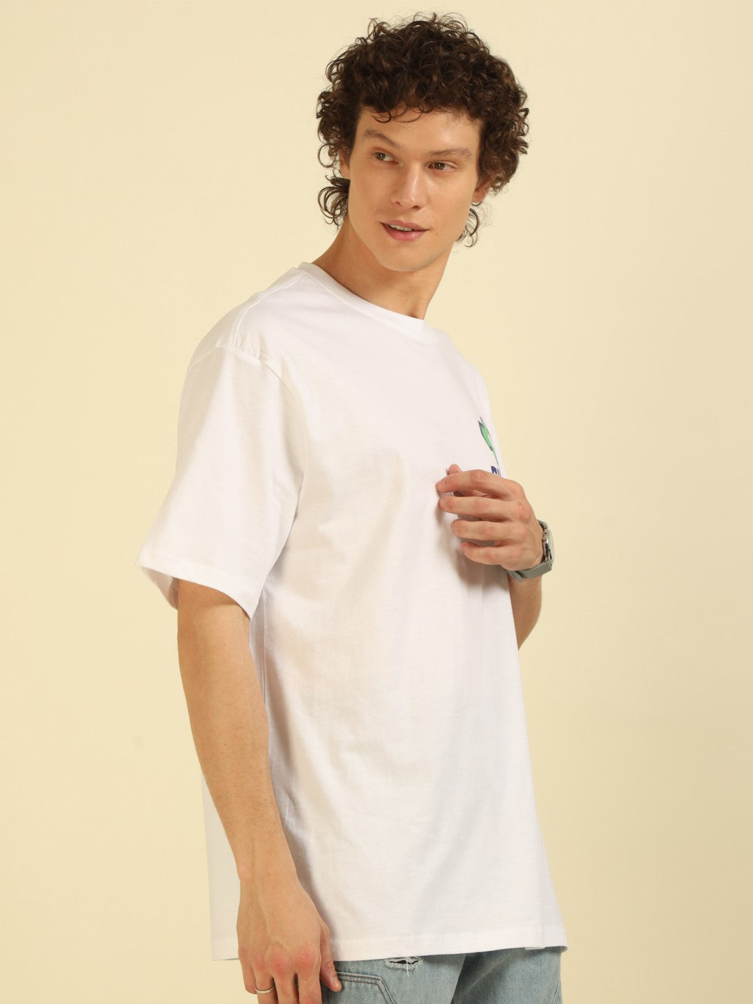 Elevate your style with this oversized half-sleeve tshirt featuring a trendy white typography print. Stand out from the crowd and make a statement with this unique and playful piece. Perfect for adding a touch of quirkiness to any casual outfit.