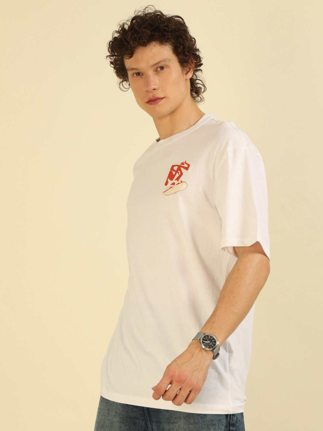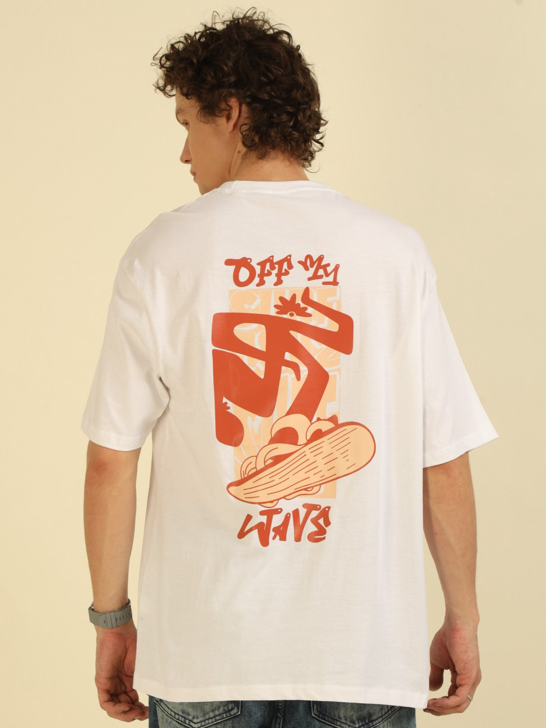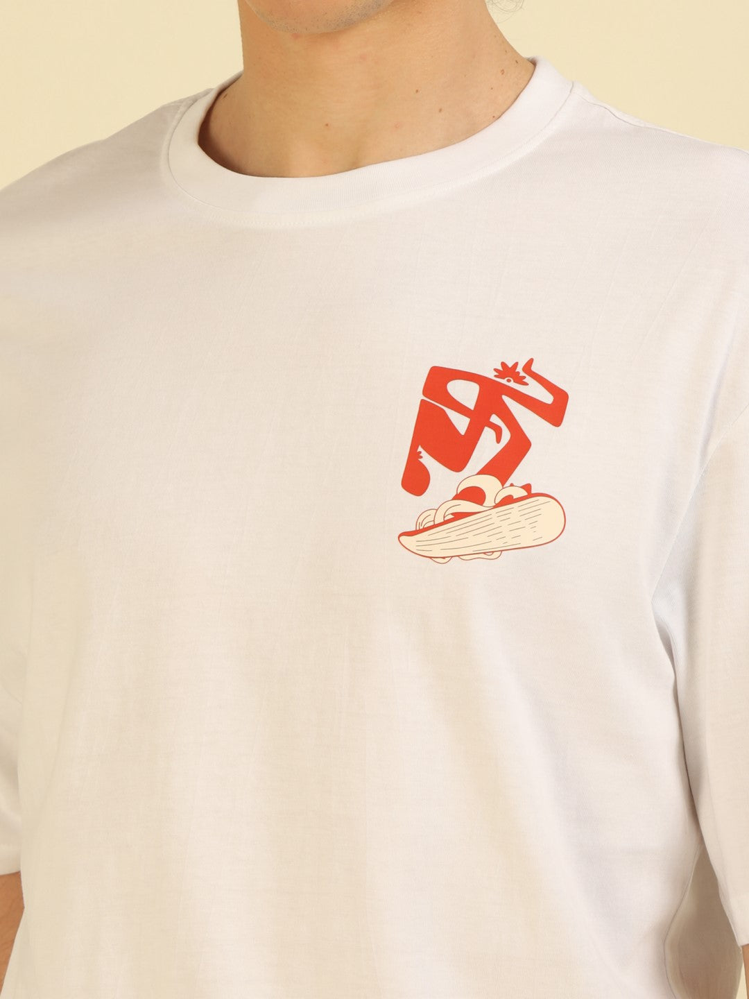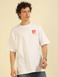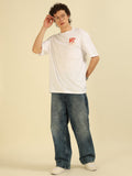 White Typography Print Oversized Half-sleeve Tshirt