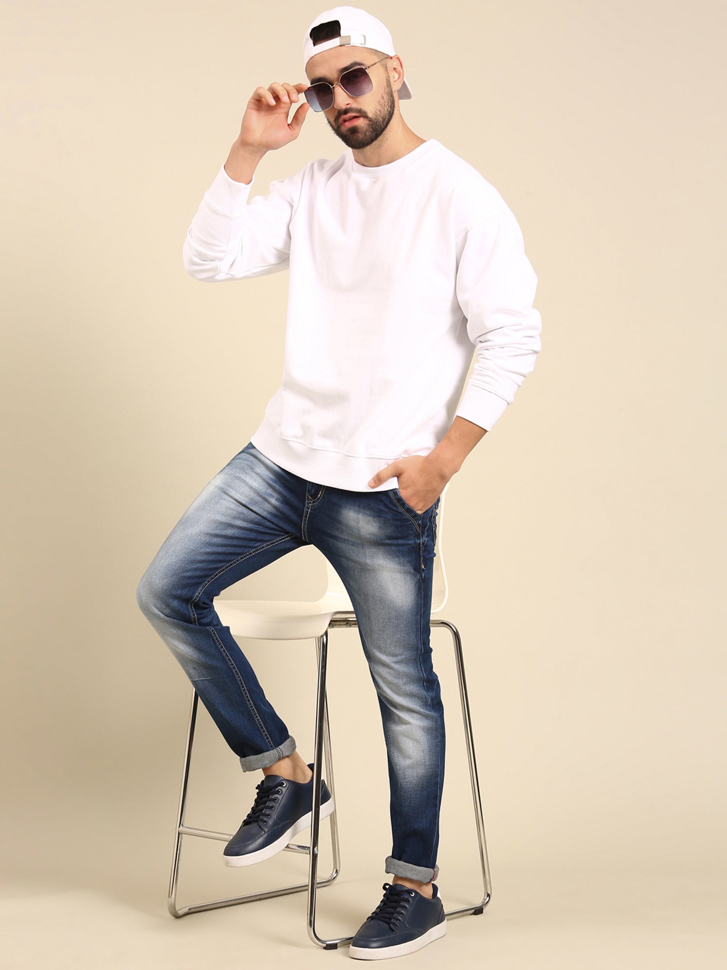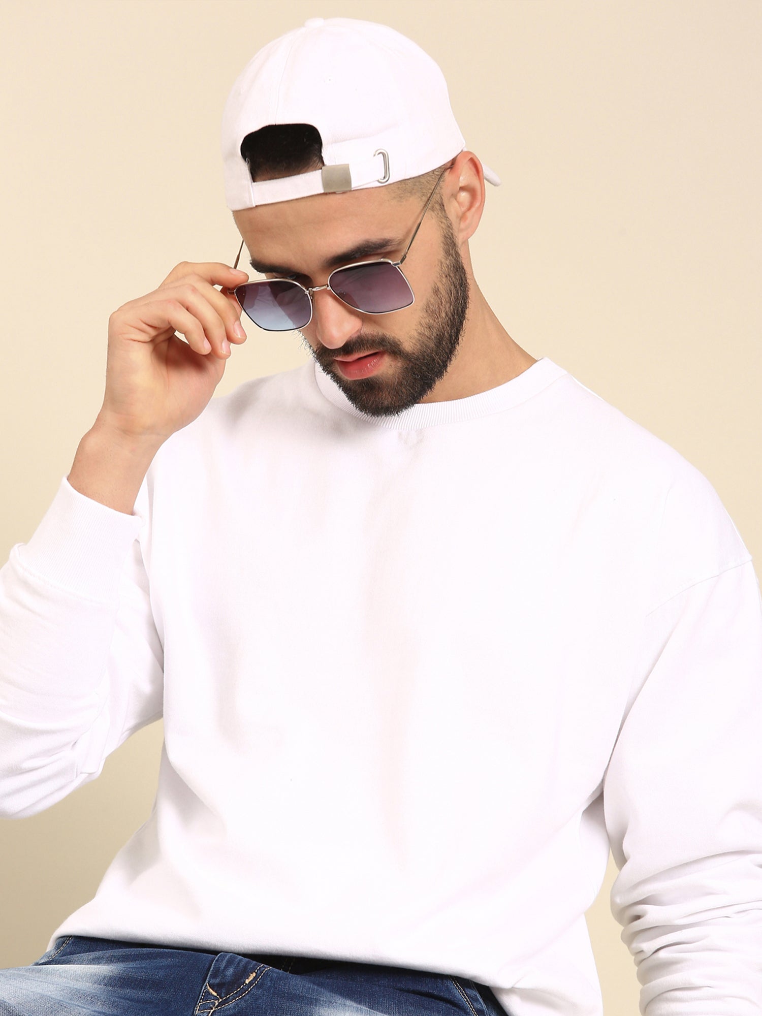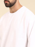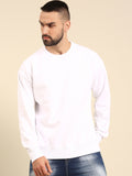 Winter Essentials: White Solid Oversized drop shoulder Sweatshirt